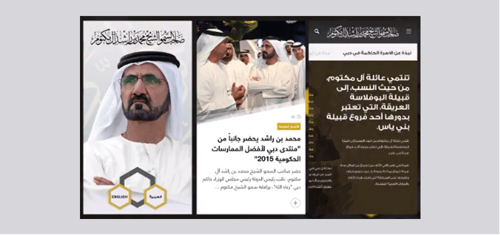 أطلق صاحب السمو الشيخ محمد بن راشد آل مكتوم نائب رئيس الدولة رئيس مجلس الوزراء حاكم دبي، بمقر المكتب الإعلامي لحكومة دبي النسخة الجديدة لموقع سموه الإلكتروني على شبكة الإنترنت مزودة بميزات وخصائص تقنية وتفاعلية تعد الأرقى والأحدث في مجال تصميم وتشغيل المواقع الشبكية على مستوى العالم بهدف ضمان تيسير عملية التصفح لأبوابه المختلفة وسهولة الوصول إلى المحتوى المنشور ضمنها سواء النصي منه أو المصور.