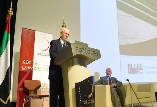 جاء ذلك في محاضرة له بجامعة زايد خلال زيارته لها مؤخرا والتي أشار فيها الى ان الشيخ زايد أصبح بتأسيسه دولة الإمارات رمزا إنسانيا اقليميا ودوليا مثل مؤسسة نوبل التي أصبحت رمزا دوليا للوقوف وراء السلام والتميز منذ عام 1901 حين نال هنري ديورانت مؤسس الصليب الأحمر أول جوائزها.