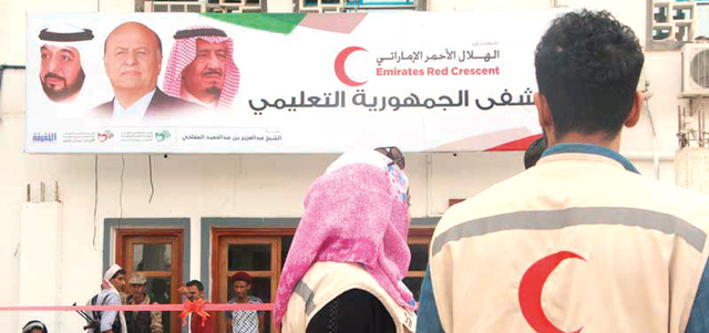 وقال بيان صحافي للهيئة، إن «الهلال الأحمر» أولت القطاع الصحي في اليمن اهتماماً خاصاً، ووضعت في سبيل ذلك خطة طموحة استهدفت تأهيل وتجهيز 14 مرفقاً صحياً، منها خمسة مستشفيات كبرى وتسع عيادات ومراكز صحية.