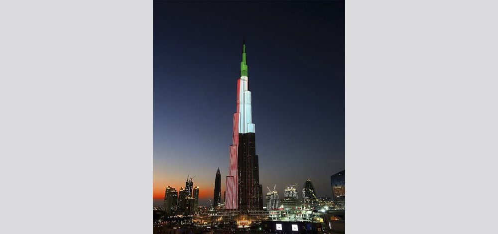 اضاء "برج خليفة" أطول مبنى في العالم، بألوان الأعلام الإماراتية والقطرية والبحرينية، وذلك احتفالاً باليوم الوطني لدولتي قطر والبحرين، تعبيراً عن قيم الأخوة والتآزر بين الإمارات والدولتين الشقيقتين.