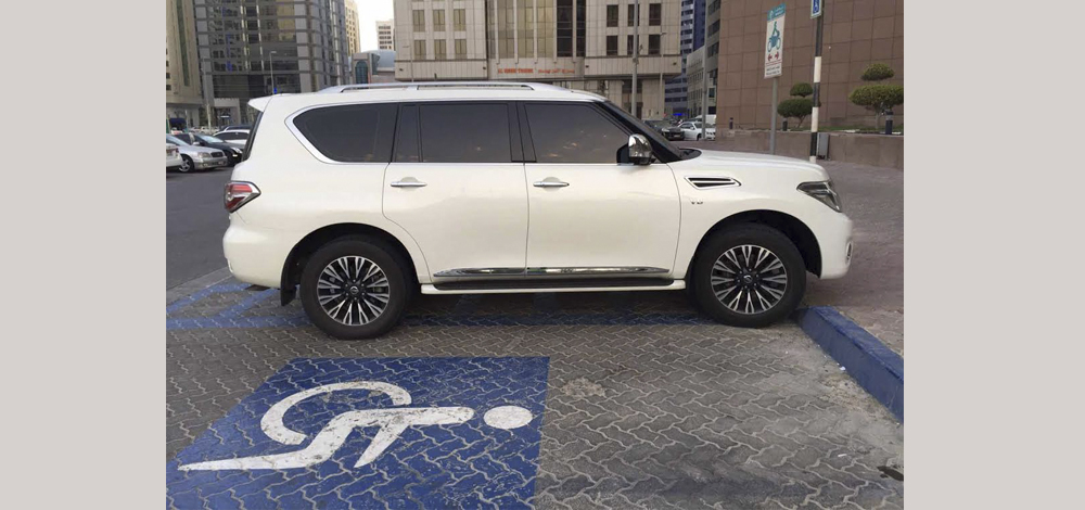 وتبين الصورة ظاهرة إيقاف المركبة في موقف مخصص للمعاقين، والذي يعتبر تعدياً ومخالفة للقانون، وانتهاكاً لحقوق هذه الفئة العزيزة على المجتمع .