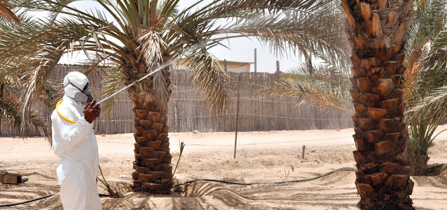 «خدمات المزارعين» يركز على الرش في مكافحة آفات النخيل. من المصدر