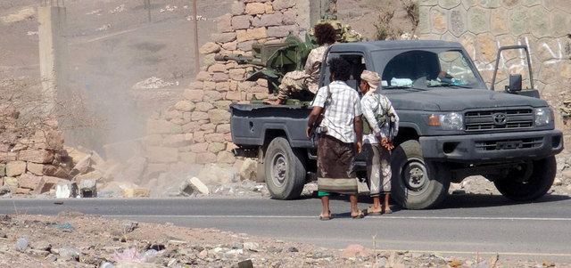 قوات من الشرعية خلال قتال المتمردين في لحج. رويترز