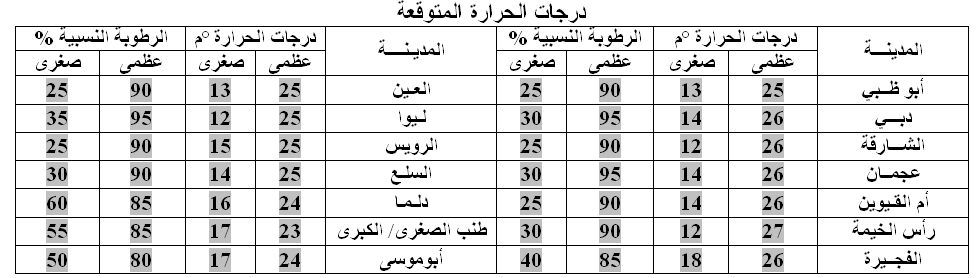 أما الرياح فستكون جنوبية شرقية - شمالية شرقية تتراوح سرعتها بين 12 و 28 كم في الساعة بوجه عام، تصل سرعتها الى 32 كم في الساعة أحيانا فوق البحر خلال فترة الظهيرة والمساء.