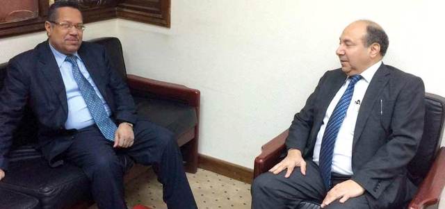 وجدّد السفير المصري دعم بلاده للرئيس الشرعي عبدربه منصور هادي، وللحكومة اليمنية برئاسة بحاح، وتنفيذ القرارات الدولية وعلى رأسها القرار رقم 2216، وعودة الشرعية الدستورية إلى كل المحافظات، لينعم اليمن بالأمن والاستقرار.