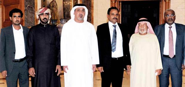 سلطان بن خليفة خلال استقباله الوفد اليمني. وام