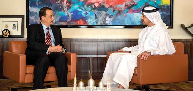 عبدالله بن زايد مستقبلاً المبعوث الأممي إلى اليمن. وام