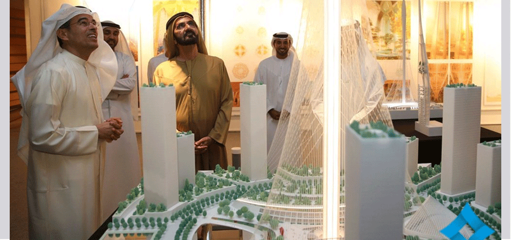 بالصور.. محمد بن راشد يختار تصميم برج جديد في خور دبي