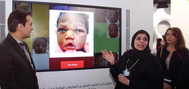 عرضت وزارة الصحة في قاعة الابتكارات الحكومية الخلاقة، بالتعاون مع معهد الشيخ زايد لتطوير جراحات الأطفال حديثي الولادة، في واشنطن، تطبيقاً متقدماً يمكنه الكشف عن المتلازمات الوراثية عند الأطفال عبر تحليل تقاسيم وملامح الوجه.
