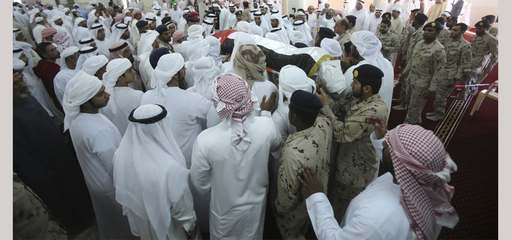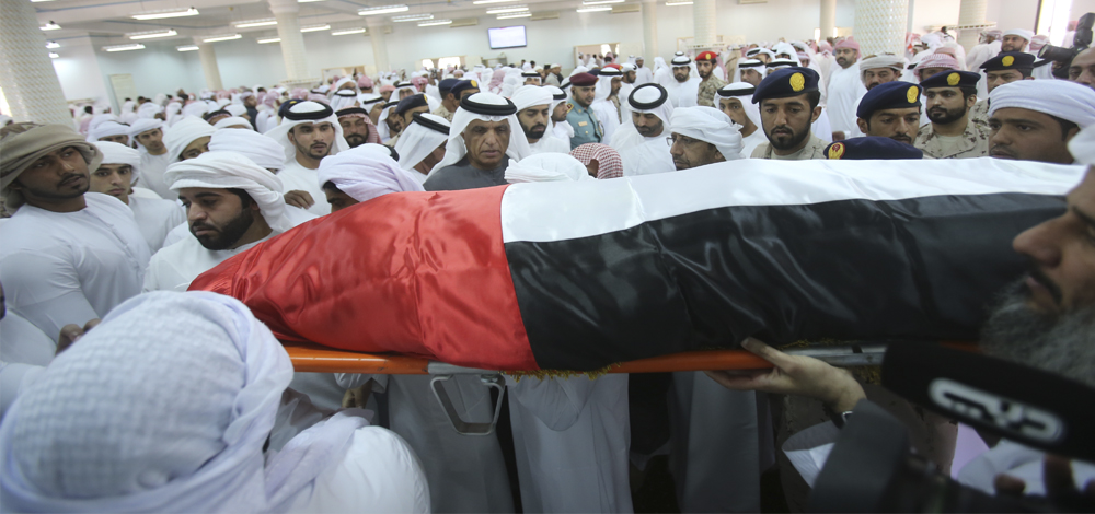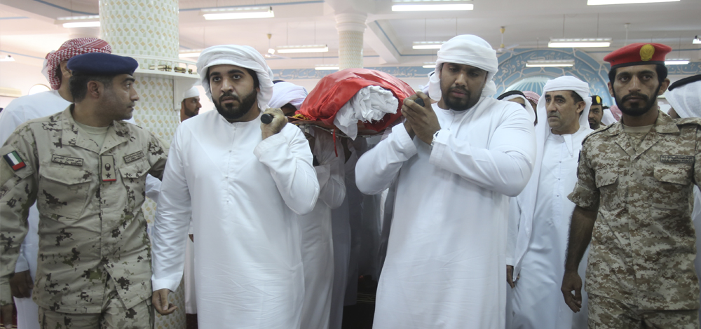شيع المئات من أهالي إمارة رأس الخيمة، صباح اليوم جثمان الشهيد عبد الله جمعة الشامسي الذي استشهد في معركة "إعادة الأمل"، ضمن قوات التحالف العربية في اليمن.