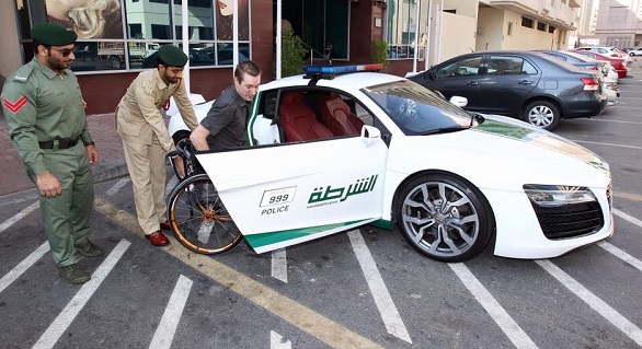 حققت القيادة العامة لشرطة دبي أمنية "سباستيان ويدل" من ذوي الإعاقة، هولندي الجنسية يبلغ من العمر 34 عاماً، كان يعمل سائق سيارة اسعاف، وأصيب بمرض جعله حبيس الكرسي المتحرك، وذلك بمشاهدته دوريات شرطة دبي الفارهة عن قرب والصعود اليها والتقاط الصور فيها.
