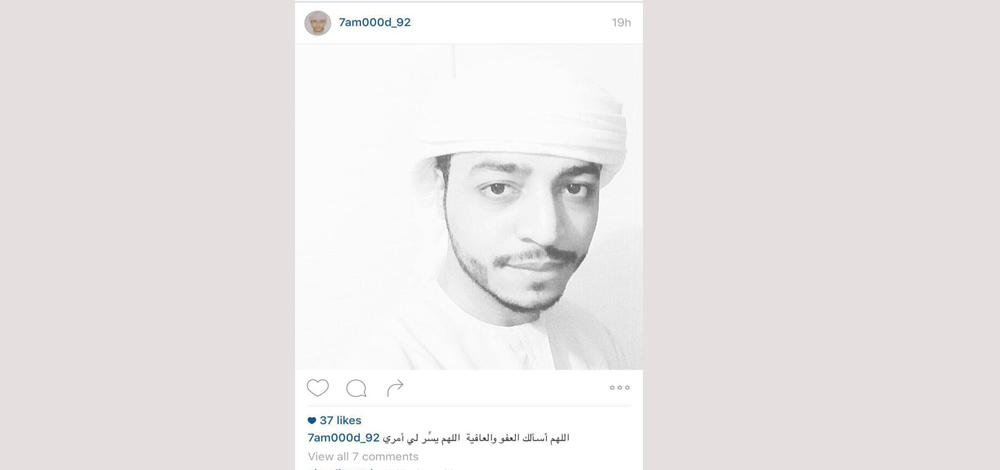 تداول رواد مواقع التواصل الاجتماعي الصورة والتعليق الذي كتبه الشهيد محمد راشد الظنحاني على حسابه الشخصي في "انستغرام " قبل استشهاده ، حيث دعا الله ان يعفو عنه ويسير امره .