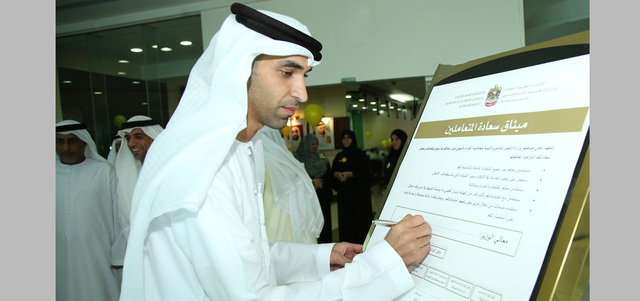 أطلقت وزارة التغير المناخي والبيئة «ميثاق السعادة»، في إطار سعيها لتحقيق السعادة لمتعامليها، إذ يؤكد الميثاق، الذي وقعه وزير التغير المناخي والبيئة، الدكتور ثاني بن أحمد الزيودي، وقيادات الوزارة والعاملون فيها، على مواصلة السعي لتحقيق رضا المتعاملين بما يفوق توقعاتهم وسعادتهم، وعلى مجموعة من الالتزامات تجاه المتعاملين، كالتواصل عبر جميع القنوات المتاحة، وتوفير الخدمة في الأوقات وعبر القنوات المناسبة، والتعامل باهتمام واحترام وبمهنية عالية من قبل فريق يتمتع بالمعرفة والمهارة، وإيلاء اقتراحات المتعاملين أكبر قدر من الأهمية.