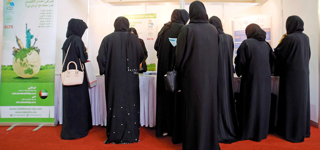 جانب من فعاليات معرض التوظيف في فرع الطالبات بأبوظبي. من المصدر