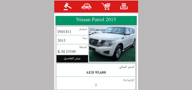 السيارات المعروضة في التطبيق الذكي للمزاد. من المصدر