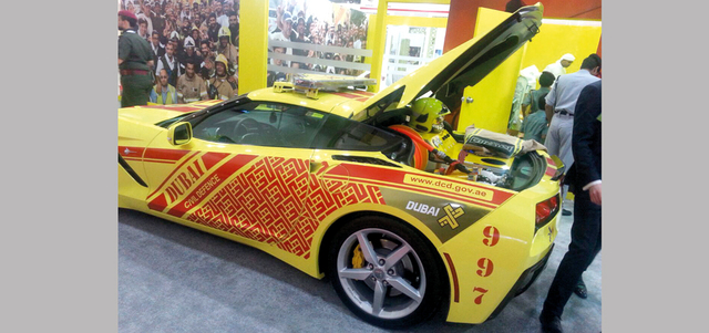 عرضت الإدارة العامة للدفاع المدني في دبي النسخة المحدثة من نظام سيارة «كورفيت شفروليه»، التي تستخدمها الإدارة في التدخل السريع وإطفاء حرائق السيارات. وعرضت الإدارة السيارة ضمن جناحها في المعرض الدولي للإنجازات الحكومية، إذ بإمكانها مضاعفة كمية المياه الممكن استخدامها في الإطفاء بمقدار سبع مرات. وتضمنت أقسام جناح الإدارة العامة للدفاع المدني قسماً لتدريب أفراد الجمهور على مهام الدفاع المدني، حيث يتم اطلاع المشاركين في الدورة على عمليات إدارة المخاطر واستخدام مطفأة الحرائق وإنقاذ المصابين. كما ضم مسابقةً في مهنة الإطفاء، حيث يعيش أفراد الجمهور تجربة أفراد الإطفاء، وتم تخصيص لقاء بين الجمهور وأفراد الطاقم الذين نفذوا عمليات الدفاع المدني في إطفاء حريق فندق «العنوان».