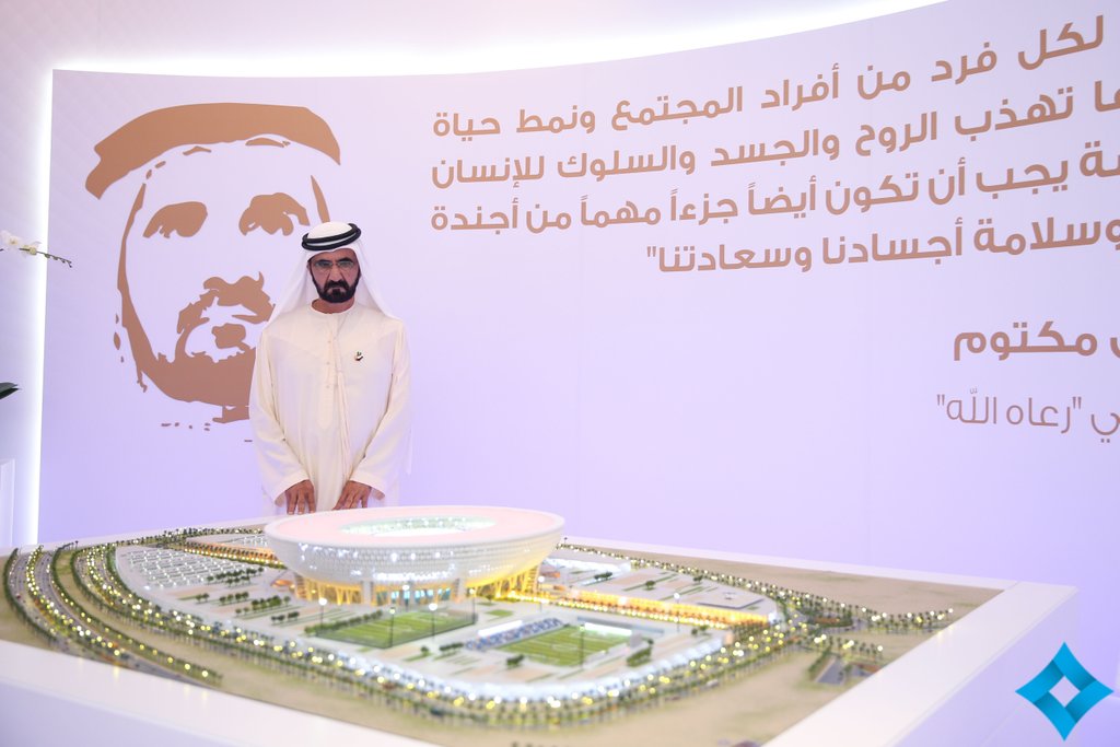 اطلع صاحب السمو الشيخ محمد بن راشد آل مكتوم نائب رئيس الدولة رئيس مجلس الوزراء حاكم دبي رعاه الله مساء اليوم على التصميم النموذجي المبتكر لإستاد محمد بن راشد الذي يتسع لـ 60 ألف متفرج وسيقام في موقع نادي دبي الرياضي بمنطقة العوير وتقدر تكلفة المشروع بنحو ثلاثة مليارات درهم.