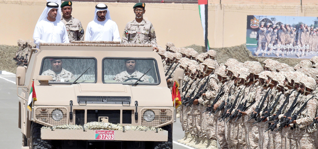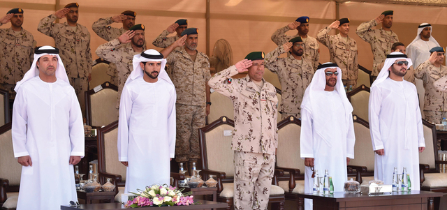 رعى سمو الشيخ حمدان بن محمد بن راشد آل مكتوم، ولي عهد دبي، بحضور سمو الشيخ مكتوم بن محمد بن راشد آل مكتوم، نائب حاكم دبي، وسمو الشيخ سرور بن محمد آل نهيان، وسمو الشيخ هزاع بن زايد آل نهيان، نائب رئيس المجلس التنفيذي لإمارة أبوظبي، احتفال القيادة العامة للقوات المسلحة بتخريج الدورة الخامسة من منتسبي الخدمة الوطنية والذكرى الأربعين لتوحيد قواتنا المسلحة الباسلة.