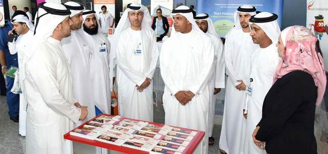 مصبح يدشن فعاليات مبادرة «الوقف الصحي» في مبنى المسافرين بمطار آل مكتوم الدولي. من المصدر