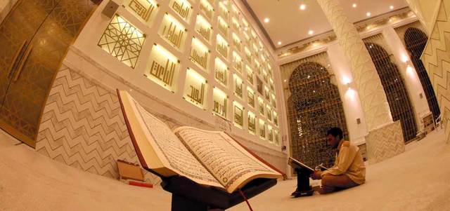 في ظلال الأسماء الحسنى، يتلو كتاب الله في بيت من بيوته العامرة خلال الشهر الفضيل.. في مسجد آمنة بنت الغرير في عجمان.