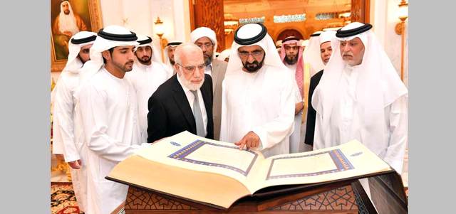وقد أعرب صاحب السمو الشيخ محمد بن راشد آل مكتوم عن سعادته واعتزازه بهذه الهدية، التي لا تقدر بثمن، كونها أولاً تحمل بين صفحاتها كلام الله عز وجل، الذي ما من كلام بعده، وثانياً لأنها لفتة طيبة من أبنائه وبناته الكريمات، خصوصاً في هذا الشهر المبارك العظيم.