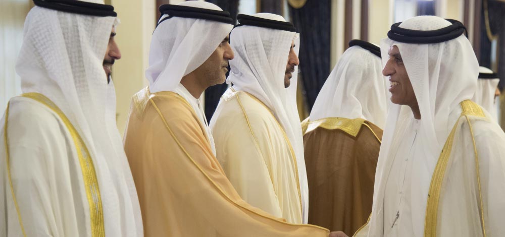 كما استقبل صاحب السمو نائب رئيس الدولة وصاحب السمو ولي عهد أبوظبي بحضور سمو الشيخ حمدان بن محمد بن راشد آل مكتوم ولي عهد دبي وسمو الشيخ حمدان بن راشد آل مكتوم نائب حاكم دبي وزير المالية أولياء العهود. فقد استقبل سموهما، سمو الشيخ سلطان بن محمد بن سلطان القاسمي ولي عهد ونائب حاكم الشارقة، وسمو الشيخ عمار بن حميد النعيمي ولي عهد عجمان، وسمو الشيخ محمد بن حمد بن محمد الشرقي ولي عهد الفجيرة، وسمو الشيخ راشد بن سعود بن راشد المعلا ولي عهد أم القيوين، وسمو الشيخ محمد بن سعود بن صقر القاسمي ولي عهد رأس الخيمة، يرافقهم عدد من الشيوخ والمسؤولين.