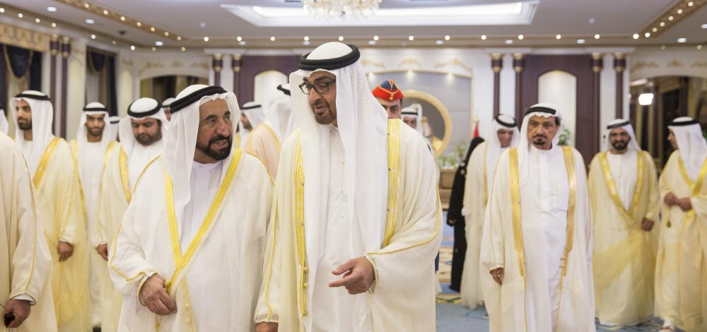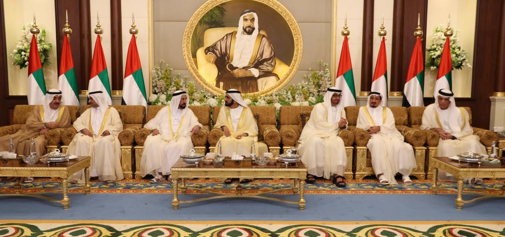 فقد استقبل سموهما في قصر المشرف بأبوظبي، صاحب السمو الشيخ الدكتور سلطان بن محمد القاسمي عضو المجلس الأعلى حاكم الشارقة، وصاحب السمو الشيخ حميد بن راشد النعيمي عضو المجلس الأعلى حاكم عجمان، وصاحب السمو الشيخ حمد بن محمد الشرقي عضو المجلس الأعلى حاكم الفجيرة، وصاحب السمو الشيخ سعود بن راشد المعلا عضو المجلس الأعلى حاكم أم القيوين، وصاحب السمو الشيخ سعود بن صقر القاسمي عضو المجلس الأعلى حاكم رأس الخيمة.
