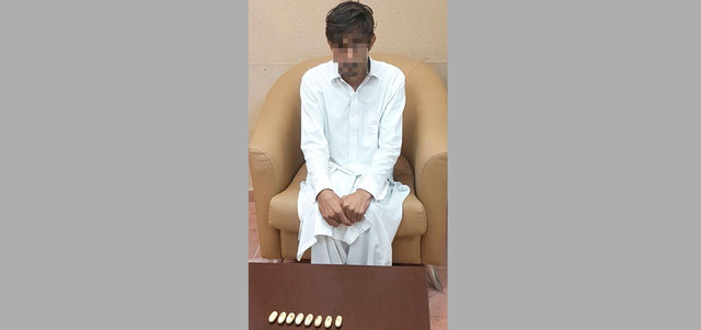 المتهم وأمامه الكبسولات. من المصدر