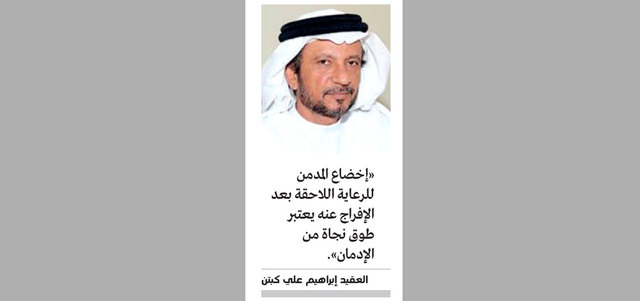 وأشار إلى أن الإدارة تنظر باهتمام إلى قضايا تعاطي الشباب صغار السن للمخدرات، وتبذل جهوداً من أجل إنقاذهم وعدم ضياع مستقبلهم، وذلك من خلال الحصول على إذن للإفراج عنهم، بشرط التحاقهم ببرنامج الرعاية اللاحقة، لحماية مستقبلهم من الضياع. وأوضح كبتن أن الإدارة تعرض تذاكر سفر على الأسر لمرافقة أبنائها لأداء العمرة، من أجل تعزيز الجانب الديني لدى الشباب المتعاطين، لحثهم على ترك التعاطي، والعودة إلى الطريق الصحيح، مشيراً إلى أنه توجد استجابة من قبل بعض المدمنين للالتحاق ببرنامج الرعاية اللاحقة والعلاج من الإدمان.