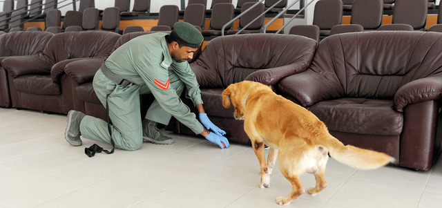 «الكلاب البوليسية أسهمت في ضبط مئات من قضايا المخدرات». 63 كلباً بوليسياً موجودة الآن لدى إدارة الخروج من الخدمة أفاد مدير إدارة التفتيش الأمني «k9»، المقدم عبدالسلام محمد الشامسي، بأن كلاباً كثيرة تركت بصمات رائعة، وافتقدتها الإدارة بعد خروجها من الخدمة، لافتاً إلى تطبيق برنامج الإهداء للجمهور بعد عرض الكلب على لجنة فنية تثبت أنه لم يعد قادراً على العطاء. وأكد أن الكلب من أفضل الحيوانات في التآلف مع الإنسان ولديه قدرة عظيمة على التفاهم والاستجابة ورد الفعل، وإذا أعطيته يعطك أكثر حتى يصل إلى مرحلة الدفاع عن صاحبه، ويعتبر أن هذه وسيلته الوحيدة في التعبير عن حبه.