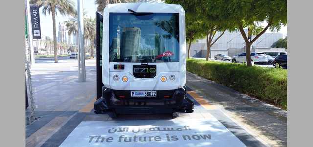تبدأ هيئة الطرق والمواصلات، بالتنسيق مع شركة إعمار العقارية، اليوم، التشغيل التجريبي لأول مركبة ذكية ذاتية القيادة تتسع لـ10 ركاب في منطقة بوليفارد محمد بن راشد، وذلك على مسار بطول 700 متر.
