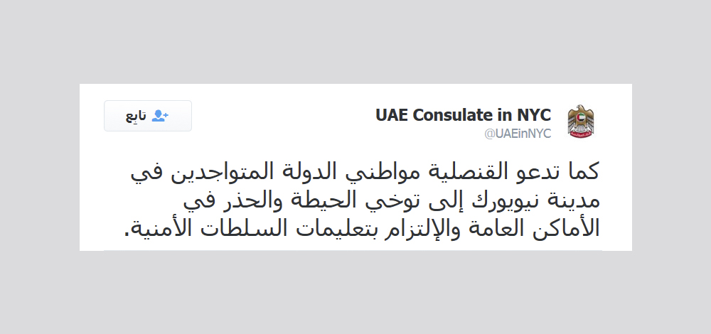 قنصلية الدولة تدعو المواطنين في نيويورك إلى توخي الحذر