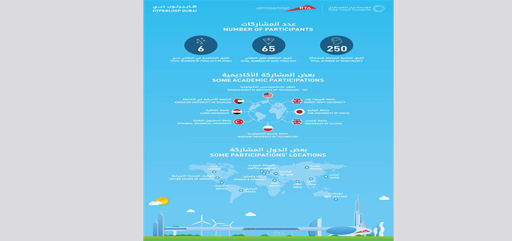 وأضاف "رغم الفترة الزمنية القصيرة، إلا أن تحدي دبي العالمي للهايبرلوب استطاع أن يجذب أكثر من 250 مشاركة من 26 دولة، حيث ضمنت قائمة المشاركات أسماء عالمية مرموقة في القطاع الأكاديمي، إضافة إلى مجموعة من أكبر شركات التصميم في العالم " .