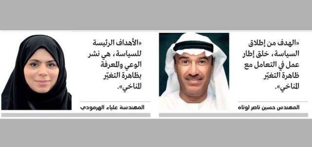 وقالت مديرة إدارة البيئة، المهندسة علياء الهرمودي، إن «الأهداف الرئيسة لسياسة التغيّر المناخي، هي نشر الوعي والمعرفة بظاهرة التغيّر المناخي، وبناء ورفع القدرات العاملة في مجال التغيّر المناخي، وكذلك التعاون والمشاركة مع الجهات المحلية والاتحادية لمكافحة تلك الظاهرة».