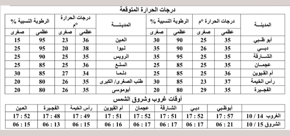 الطقس المتوقع في الدولة خلال العطلة