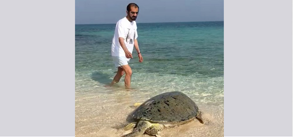 نشرت حرم صاحب السمو الشيخ محمد بن راشد آل مكتوم، نائب رئيس الدولة رئيس مجلس الوزراء حاكم دبي، سمو الأميرة هيا بنت الحسين لقطات فيديو لسموه وهو يساعد سلحفاة على العودة للبحر. وعلقت سموها على الفيديو بالقول "الصحراء والبحر اجزاء متساوية من التراث الإماراتي ، ولكن لا يستطيع الجميع ادراكهم وفهمهم بالمعني الصحيح مثل الشيخ محمد بن راشد ال مكتوم".