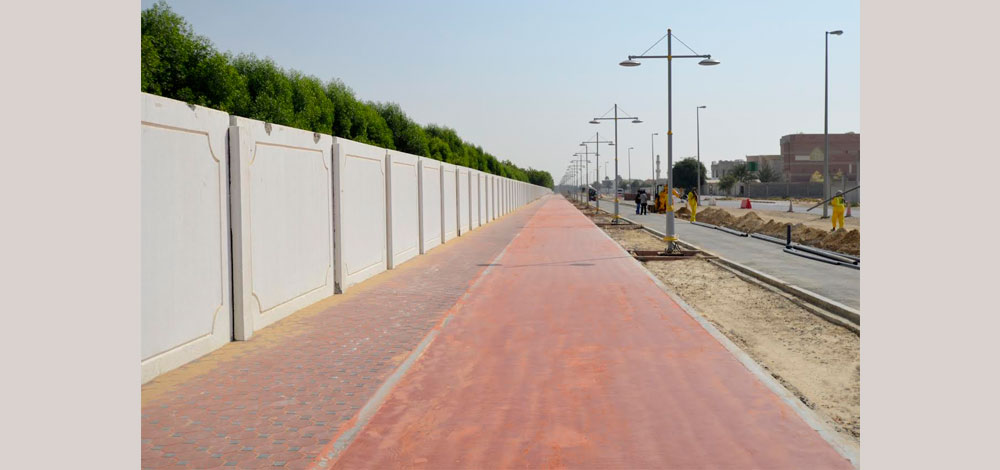 وبدوره ذكر مدير الهيئة لشؤون الطرق المهندس سليمان عبدالرحمن الهاجري أن المشروع يشمل إنشاء ممر مطاطي لممارسي رياضة المشي وآخر أسفلتي لممارسي رياضة الدراجات الهوائية على امتداد الجهة الخلفية للمنتزه الوطني بطريق الشارقة الذيد والمقابل لمنطقة القرائن 1 و2. لافتا إلى أن عرض كل من الممر المطاطي للمشى وممر الدراجات الهوائية يبلغ 3 م وبطول إجمالي يبلغ حوالي 2,2 كم مع توفير جزيرة وسطية فاصلة للزراعة التجميلية بعرض2,5م واستخدام أعمدة إنارة ذات مظهر حضاري وصديقة للبيئة، تنسجم مع المظهر العام للمشى، تستخدم تقنية LED لتوفير الطاقة يصل عددها إلى 120 عموداً، بالإضافة لممر آخر مكون من البلاط المتشابك ملاصق لجدار المنتزه الوطني بعرض 1,8 م.