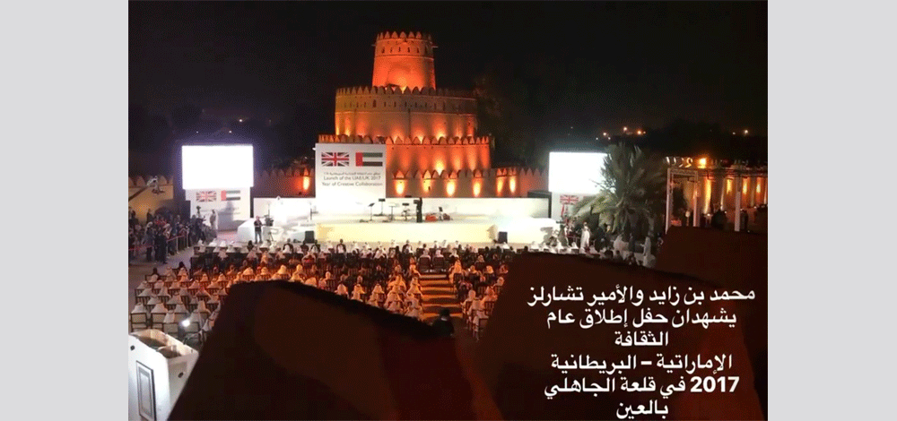 شهد صاحب السمو الشيخ محمد بن زايد آل نهيان ولي عهد أبوظبي نائب القائد الأعلى للقوات المسلحة وصاحب السمو الملكي الأمير تشارلز ولي عهد المملكة المتحدة حفل إطلاق عام الثقافة الإماراتية – البريطانية 2017 الذي أقيم مساء اليوم في قلعة الجاهلي بمدينة العين. وقد نشرت مجموعة من الفيديوهات المباشرة من فعاليات الحفل على الحساب الرسمي لصاحب السمو الشيخ محمد بن زايد على موقع التواصل الاجتماعي "الانستغرام".