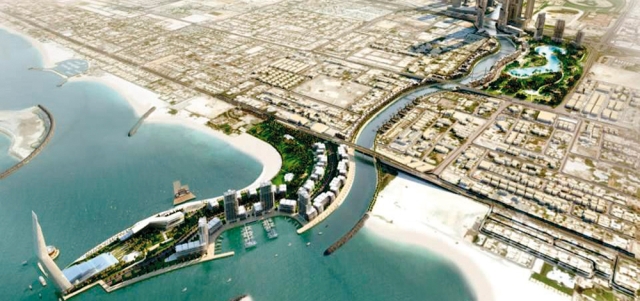 وأشار الطاير إلى أن العقد الثالث تضمن أعمال حفر قناة مائية تربط قناة الخليج التجاري بالخليج العربي، بطول 3.2 كيلومترات، تبدأ من شارع الشيخ زايد مروراً بحديقة الصفا ومنطقة جميرا الثانية، وصولاً إلى الخليج العربي. كما تضمنت بناء ثلاثة جسور للمشاة بتصاميم فريدة، بارتفاع 8.5 أمتار، تربط ضفتي القناة في مواقع مميزة لتسهيل حركة تنقل السكان والزوار، وتشجيع استخدام وسائل النقل الجماعي، وشملت أيضاً بناء خمس محطات للنقل البحري، إضافة إلى أعمال الردم لإنشاء شبه جزيرة صناعية على امتداد حديقة جميرا، بما يضاعف طول شاطئ الحديقة ويزيد مساحتها، ويتيح المجال لإضافة العديد من الأنشطة الترفيهية.