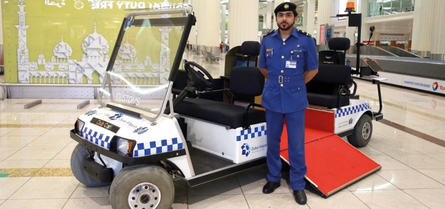 كشفت إدارة عمليات المسافرين في جمارك دبي عن ابتكار عربة التخليص الجمركي الذكية، لخدمة ذوي الإعاقة وكبار السنّ وكبار الشخصيات، إذ طوّر قائد فريق الإدارة محمد أحمد سعيد الخنجري، سيارة «غولف» صغيرة تعمل على الكهرباء، مزوّدة بكاميرا أمنية، وأخرى لبصمة الوجه، وكرسي إلكتروني متحرك، وثلاث شاشات تخدم موظف التخليص والعميل وذوي الإعاقة، وممر كهربائي للصعود إلى المركبة، وطاولة لفحص البضاعة، وصندوق للحفظ، وآخر للإسعافات الأولية، بالإضافة إلى طابعة.