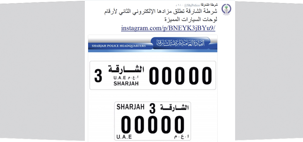 شرطة الشارقة تطلق مزادها الإلكتروني الثاني لأرقام لوحات السيارات المميزة