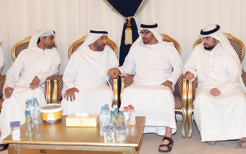 كما قدم صاحب السمو الشيخ محمد بن زايد آل نهيان، ولي عهد أبوظبي نائب القائد الأعلى للقوات المسلحة، مساء أمس، واجب العزاء في وفاة الفريق خميس مطر المزينة القائد العام لشرطة دبي.