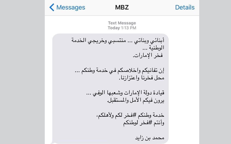 محمد بن زايد يفاجئ منتسبي الخدمة الوطنية برسالة نصية