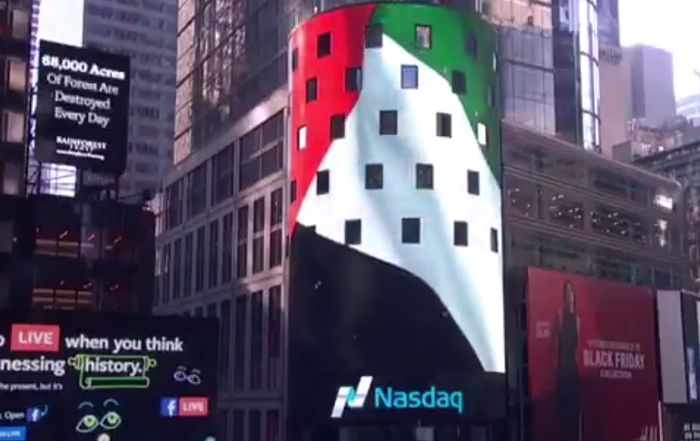 احتفالات #اليوم_الوطني45 في ساحة التايمز سكوير في نيويورك .. عاش اتحاد اماراتنا #الامارات @NasdaqDubai pic.twitter.com/5AHzT8Wrbo