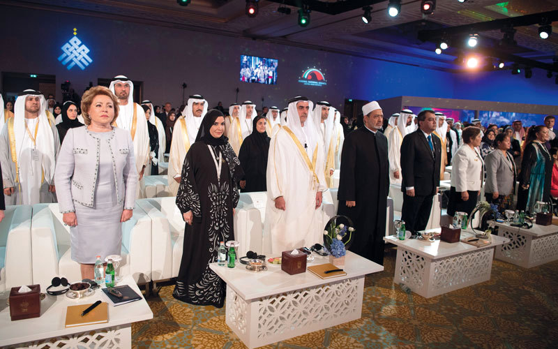 سيف بن زايد خلال افتتاحه فعاليات القمة العالمية لرئيسات البرلمانات في أبوظبي. وام