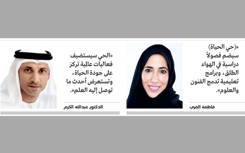 من جهتها، قالت الرئيس التنفيذي لمؤسسة التعليم المدرسي في الهيئة، فاطمة غانم المري: «يقدم (حي الحياة) للطلاب في دبي فرصة للمساهمة في بناء المجتمع من خلال التنمية المستدامة، لاسيما أن (حي الحياة) سيضم فصولاً دراسية في الهواء الطلق، وبرامج تعليمية تدمج الفنون والعلوم والتكنولوجيا والهندسة والرياضيات والدراسات الاجتماعية، إضافة إلى التدريب العملي على الزراعة».