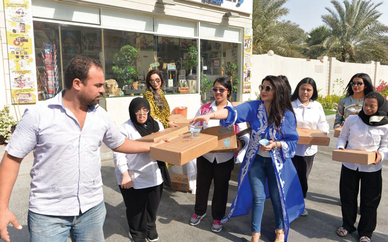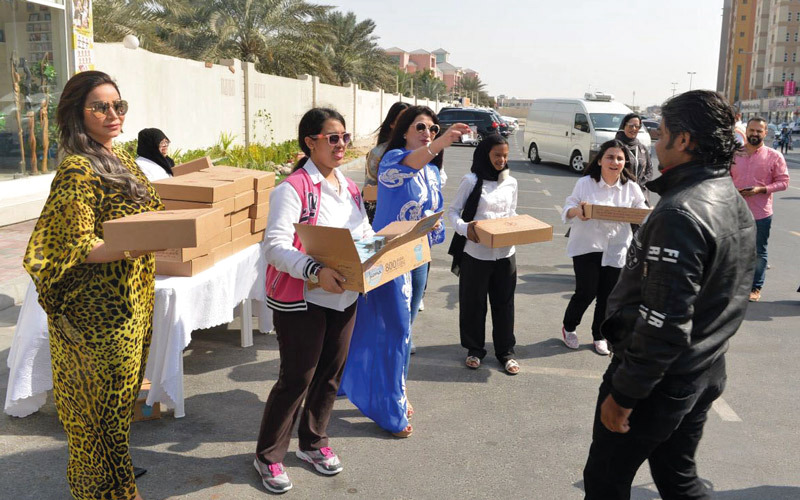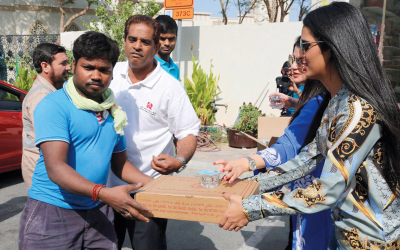 وزّع طلبة في مركز راشد للمعاقين، ترافقهم الرئيس التنفيذي لمركز راشد للمعاقين، مريم عثمان، إلى جانب الشيخة شيخة آل ثاني، وسيدة الأعمال هبة الرمحين، والإعلامية لجين عمران، أمس، وجبات غذائية متكاملة على عدد من العمال الذين يتواجدون في منطقة البرشاء بدبي، في إطار مساهمة المركز في دعم مبادرة «عام الخير» التي أطلقها صاحب السمو الشيخ خليفة بن زايد آل نهيان، رئيس الدولة، ومبادرة «بنك الإمارات للطعام» التي أطلقها صاحب السمو الشيخ محمد بن راشد آل مكتوم، نائب رئيس الدولة رئيس مجلس الوزراء حاكم دبي.