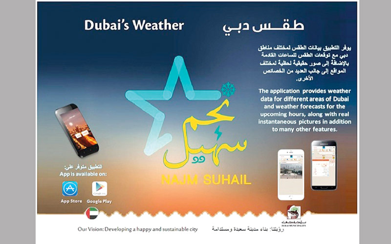 وهي خدمة تنتج عن منظومة الرصد والتنبؤ (نجم سهيل)، وهو تطبيق أطلقته بلدية دبي للأرصاد الجوية لمدينة دبي، وتتكوّن المنظومة من 16 محطة ترصد بيانات الأرصاد الجوية والبحرية، التي تتضمن سرعة الرياح، واتجاهها وقوتها والرطوبة النسبية، ورطوبة التربة، ونقطة الندى، والضباب، ودرجة حرارة الهواء، ودرجة حرارة الماء، ودرجة حرارة التربة، والضغط الجوي، والمد والجزر، وسرعة واتجاه التيارات البحرية، وجودة المياه، والإمطار، وتغطي الكاميرا الإمارة والطرق الرئيسة بشكل منتظم.