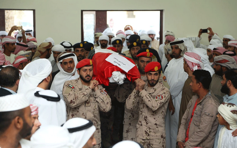 بالصور.. سالم القاسمي وجموع المصلين يؤدون صلاة الجنازة على جثمان الشهيد أحمد المزروعي