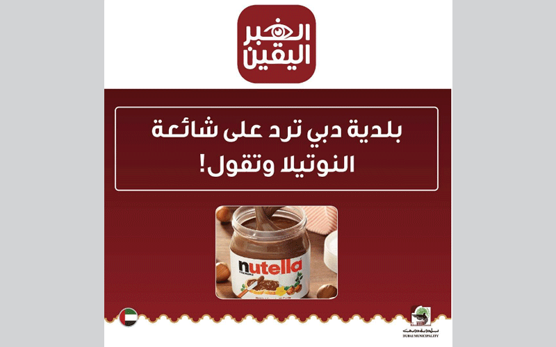 "بلدية دبي" ترد على شائعة "النوتيلا"